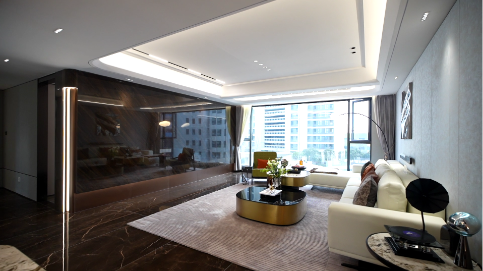 提升业主归家的第一观感与体验,力生汉江樾奢装车库入口打破传统车库灰暗单调的设计,把五星级酒店的设计理念搬到车库里面,采用高标准的人车分流,地面奢装一体化,地库高端定制处理,铝板品质材料搭配科技感十足的星空穹顶,进车智能追光系统。精装入户大堂感应电动门,人脸验证识别系统,全方位提升高端人居的惬意生活。