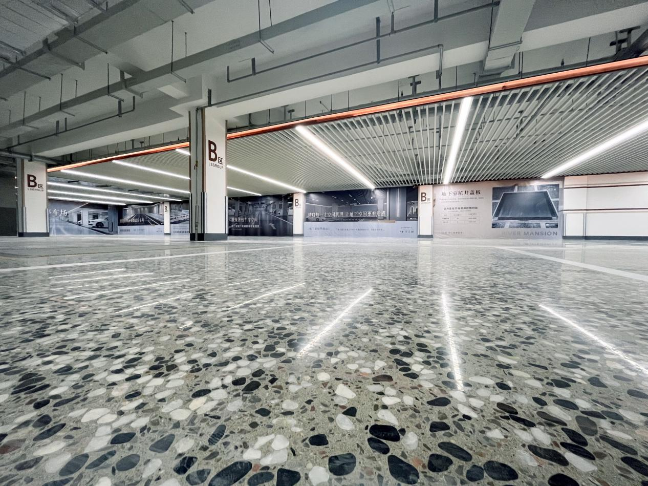 对于用材的考究真是细节满满,考虑得更周到,更全面,更极致。力生汉江樾设计团队经过多个项目的实地考察,项目地下室行车道上方统一满铺铝格栅吊顶,地面采用水磨石+结晶工艺,车位划线采用纳米硅。展示效果地面有光泽,车位划线有质感耐磨损。在其他细节方面定制不锈钢井盖,观感和品质比传统做法成本高出较多。铝合金倒车防撞挡,铝合金防撞条美观,坚固耐用,可有效防护车辆。地下室消火栓采用不锈钢材质,与管道颜色一致。